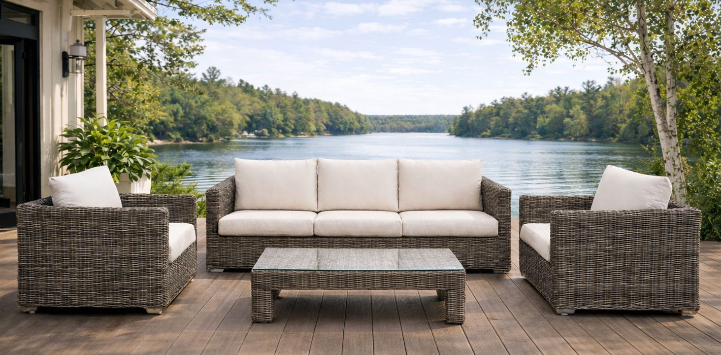 Designed for smaller to mid-size patios, the Rockston is our most comfortable compact collection. It features 5mm round wicker for an elegant and sophisticated look, and a durable weather-resistant aluminum frame. Custom-made cushions come in a choice of premium Canadian-made Sunbrella® fabrics.