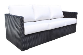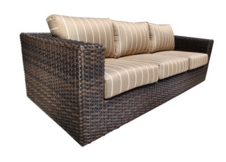 A sophisticated and uniquely new hybrid design where woven meets metal. Introduce this new look mixed-material design in your outdoor space. Hand-woven resin wicker with aluminum weather-resistant metal details. Powder-coated with a fully aluminum frame for rust-free, weather-resistant enjoyment for many years to come. Cushions are hand-crafted locally in Ontario featuring domestic Sunbrella Premium Brand fabric and premium foam.