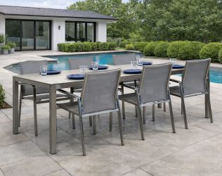Fermo Armchair – SS – Grey Item # Fermo Armchair - SS - Grey Stainless Steel Frame Premium Grey Sling Fabric