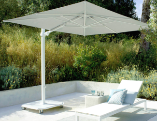 The JCP.401 Sidepost is easy-to-use with a simple crank lift system to open and close umbrella. The unique tilting function allows the umbrella to tilt front to back. This elegant, extra-sturdy aluminum octagonal shaped frame, seamlessly transitions from pole to base and rotates a complete 360°. The JCP.401 style is the perfect shade for commercial and residential use.