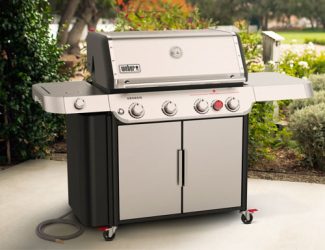The 3-burner, stainless-steel Genesis SP-S-335 with NIGHTVISION LED lighting, delivers legendary Weber quality, performance and durability in a grill you can rely on to make outdoor cooking for family and friends easy and enjoyable. The PureBlu burner system sets this grill apart from the pack – featuring unique, tapered burner tubes that generate consistent pressure and flames and deliver even heat across the grilling surface. Flames are directed above the raised gas ports, while food debris falls below, minimizing clogging and ensuring the grill lights every time.